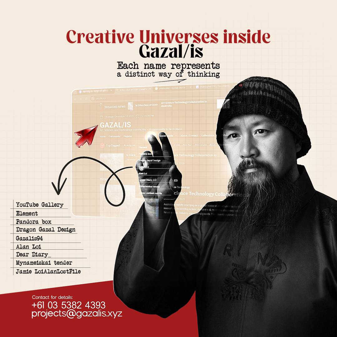 At Gazal/is, art meets science, technology blends with intuition, and creativity is treated as a living, ongoing process rather than a finished product. Each universe speaks its own language, follows its own rhythm, and explores its own purpose — sometimes quiet and reflective, sometimes bold and experimental.